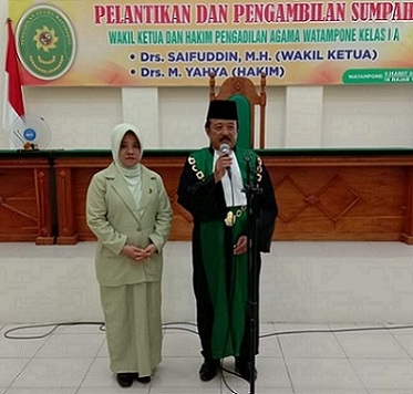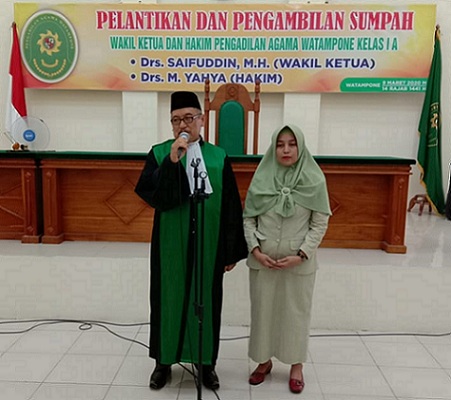 Watampone, Senin, 9 Maret 2020, bertempat di Ruang Pertemuan Pengadilan Agama Watampone, pukul 13.30 WITa, diselenggarakan acara Pelantikan dan Pengambilan Sumpah Jabatan Wakil Ketua, Drs. Saifuddin, M.H., dan Hakim, Drs. M. Yahya, berdasarkan Surat Keputusan Ketua Mahkamah Agung RI Nomor : 25/KMA/SK/II/2020 tanggal 10 Februari 2020.