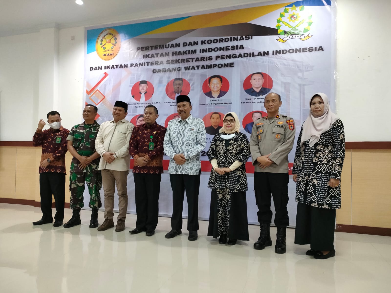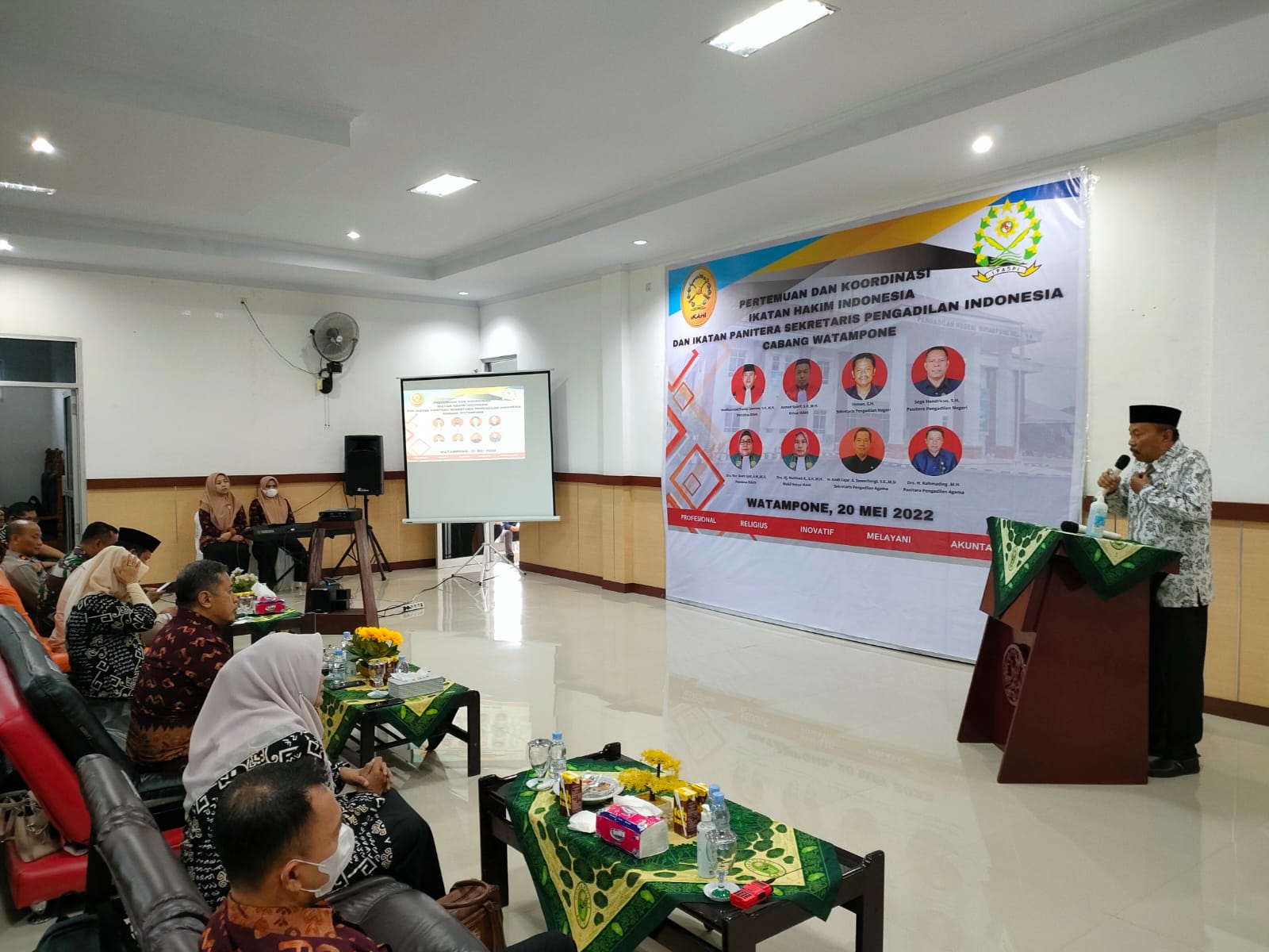 Jumat, 20 Mei 2022 - Bertempat di Pengadilan Negeri Watampone dilaksanakan kegiatan pertemuan IKAHI dan IPASPI Watampone. Kegiatan ini dihadiri Wakil Bupati Bone Bapak Drs. H. Ambo Dalle, M.M., Ketua Pengadilan Negeri Watampone Yang Mulia MOEHAMMAD PANDJI SANTOSO, S.H.,M.H., dan Ketua Pengadilan Agama Watampone Yang Dra. NUR ALAM SYAF,S.H.,M.H dan Panitera Sekretaris Pengadilan Negeri dan Pengadilan Agama Watampone serta Wakil Ketua, Anggota dan Para Pengurus IKAHI dan IPASPI.