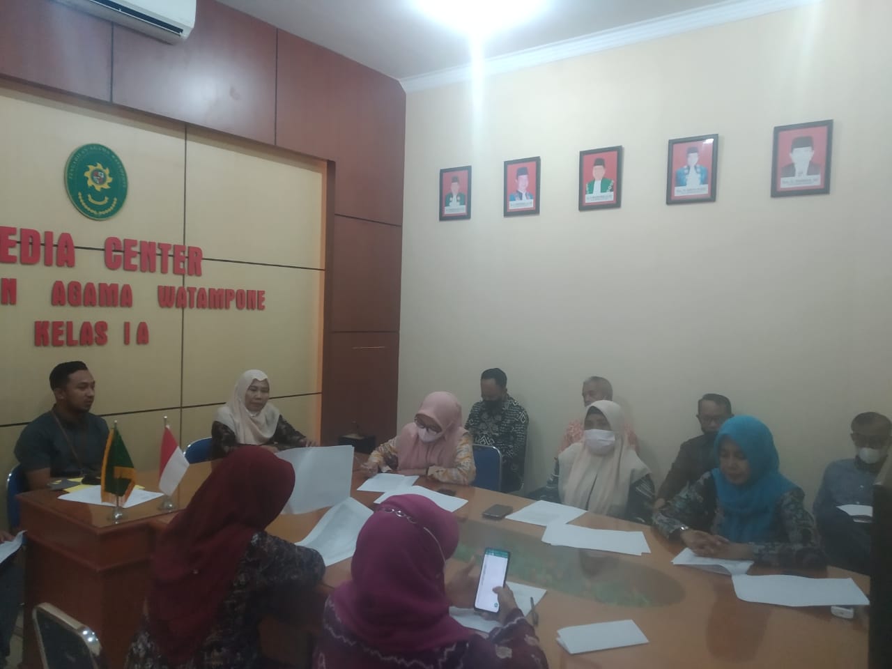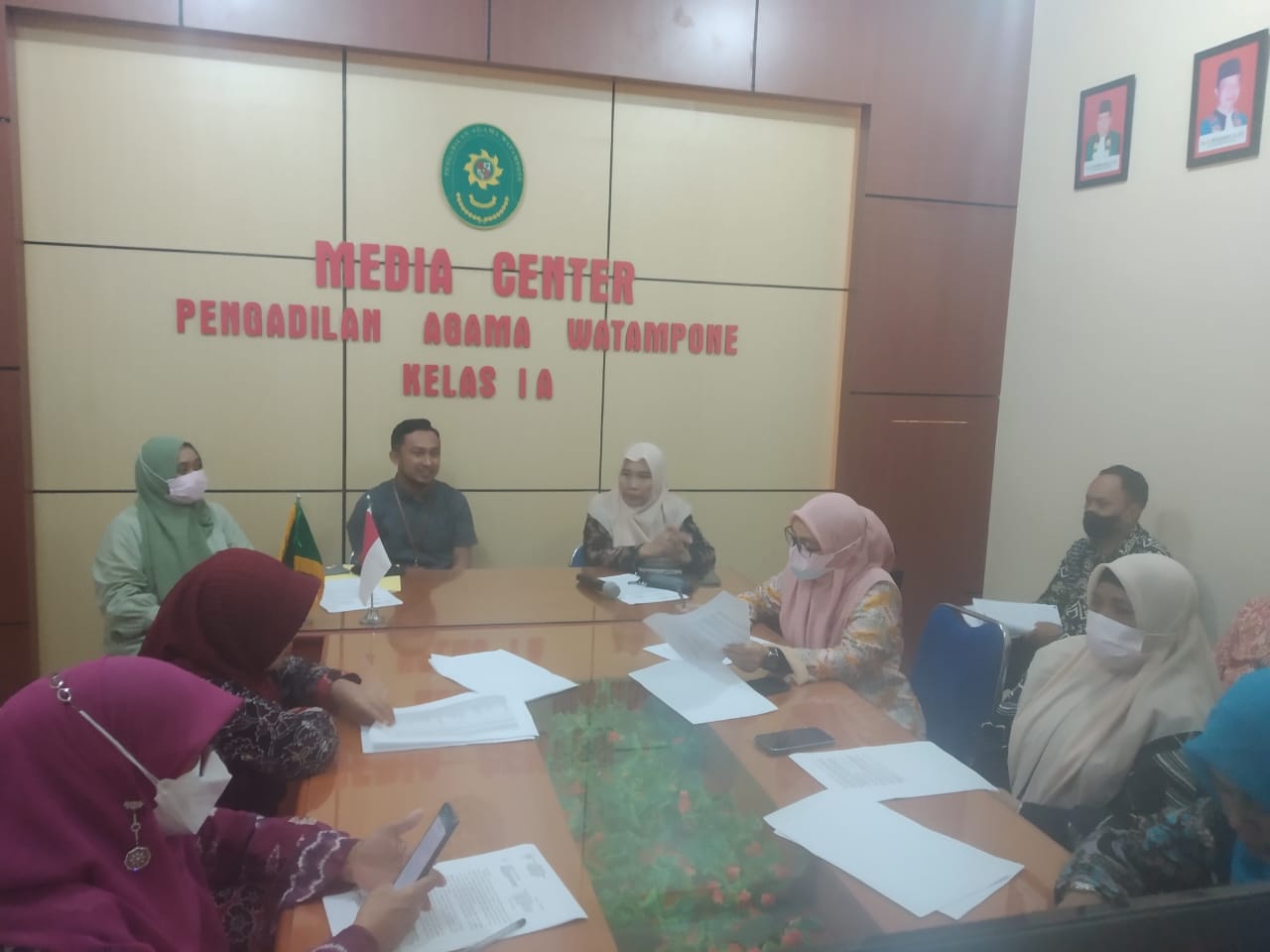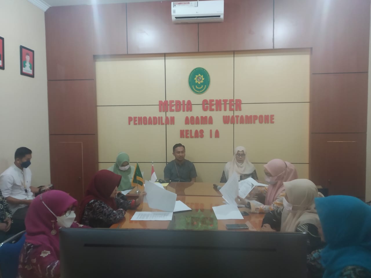 Watampone, 27 Mei 2022 - Bertempat di Ruang Media Center Pengadilan Agama Watampone, diselenggarakan kegiatan pertemuan dengan BSI (Bank Syariah Indonesia) Cabang Watampone, guna untuk mensosialisasikan produk dari BSI. Kegiatan ini diikuti oleh Wakil Ketua, Hakim, Pejabat Struktural, dan Pejabat Fungsional PA Watampone.