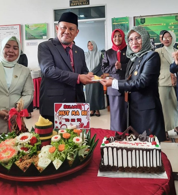Ramah tamah dengan pemotongan tumpeng oleh Ketua Pengadilan Negeri Watampone kepada Ketua Pengadilan Agama Watampone